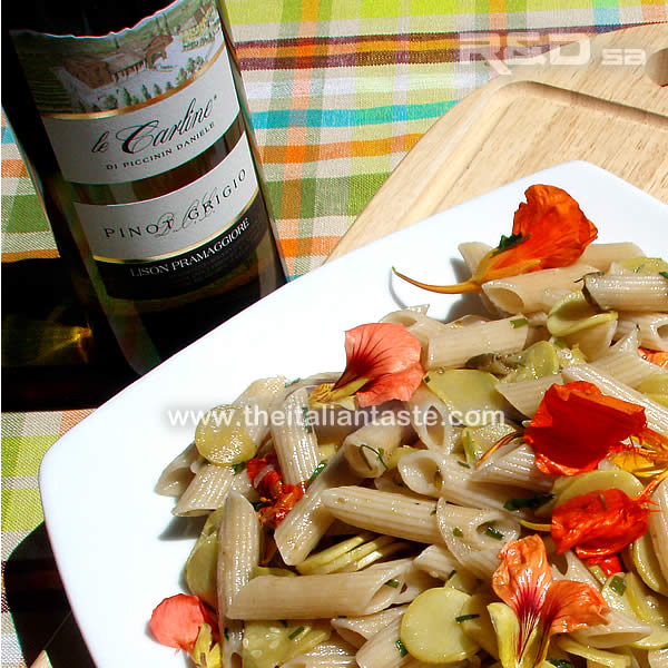 - Pasta with zucchini and nasturtium flowers